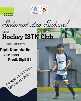 Selamat dan sukses kepada Mahasiswa ISTN dari Unit Kegiatan Mahasiswa ISTN Hockey Club (IHC) yang berhasil terpilih menjadi Atlit Pelatda (Pelatihan Daerah) DKI Jakarta dan Kota Depok – Jawa Barat.